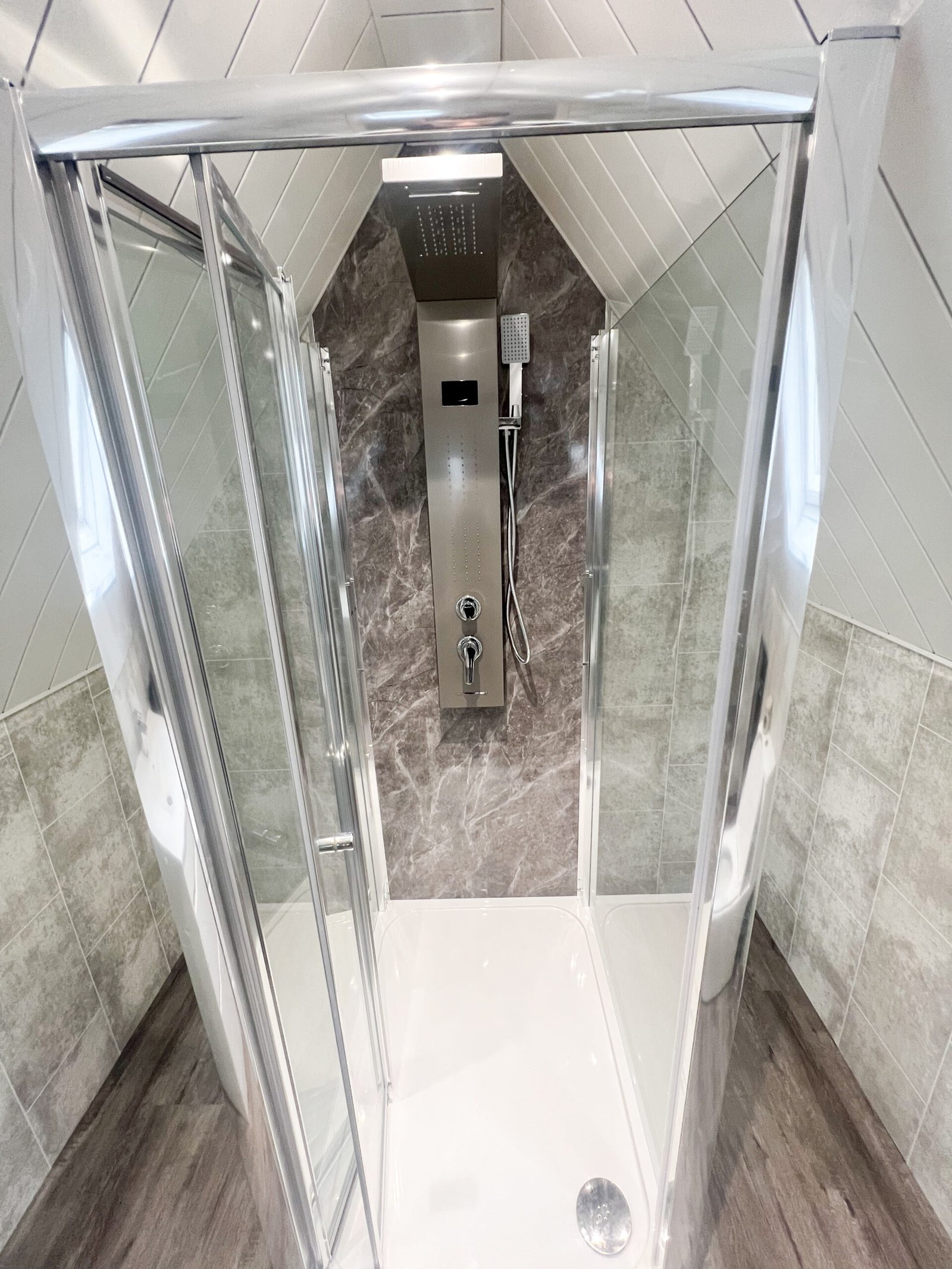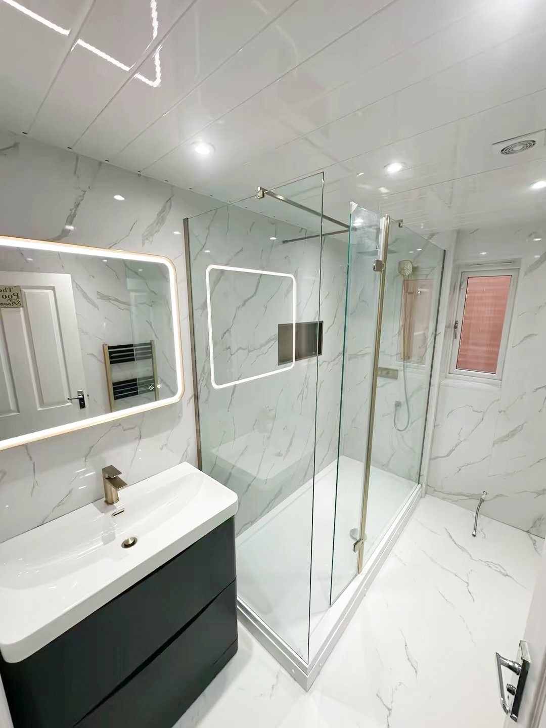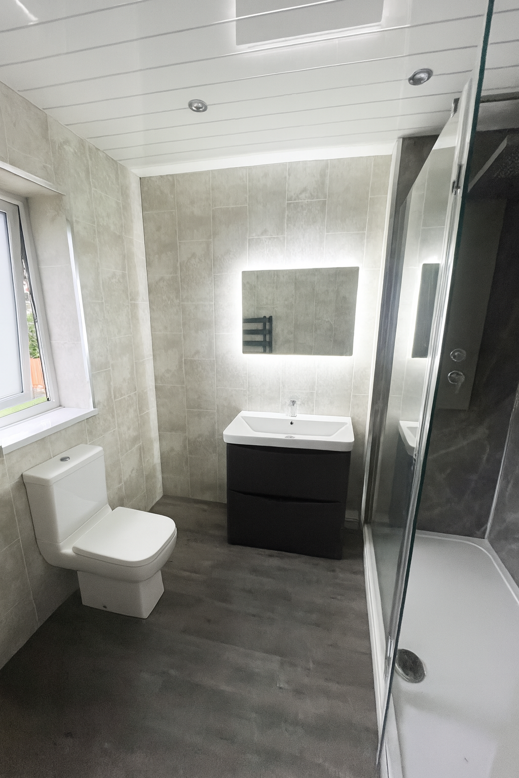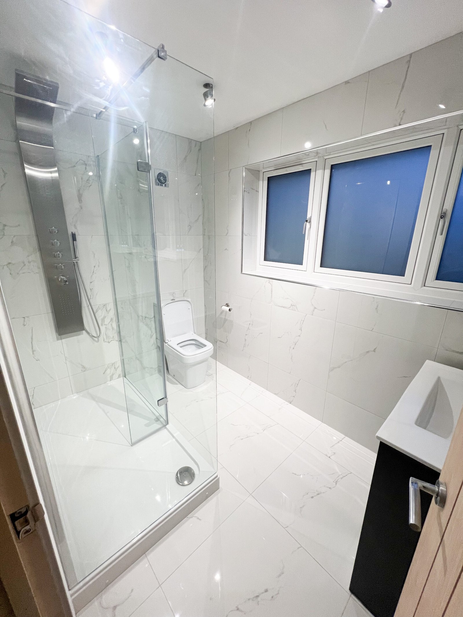 Installation of new pipework, showers, taps, lighting, and ventilation systems, all carried out by qualified professionals and fully compliant with building regulations.