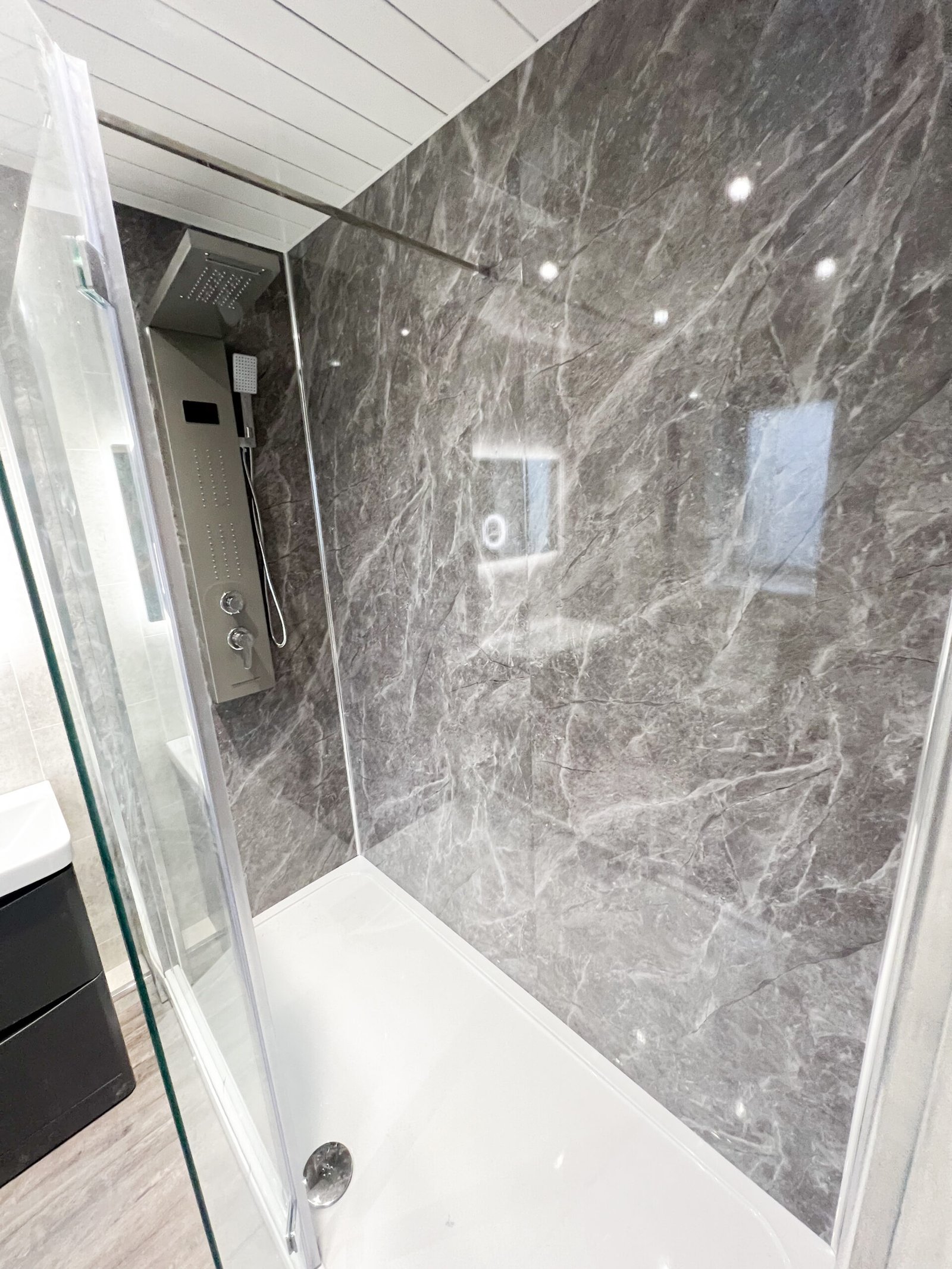 a range of bathroom wall cladding options—a great alternative to tiles for a cleaner, low-maintenance finish.